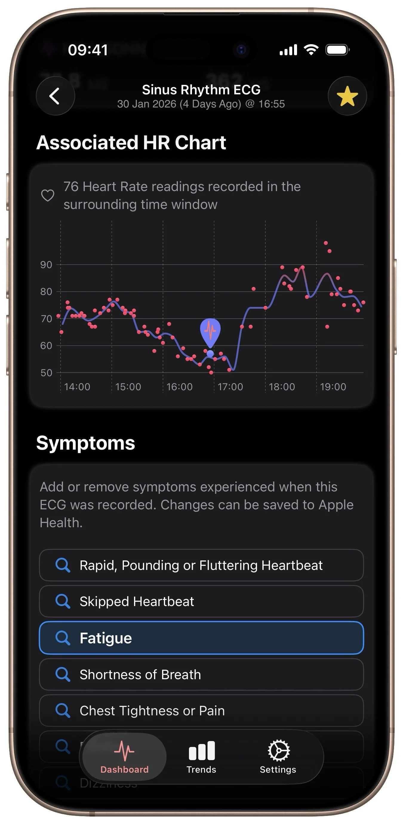 Review recent ECGs directly on Apple Watch, charts and symptom management for quick on-the-go access without needing to reach for an iPhone.