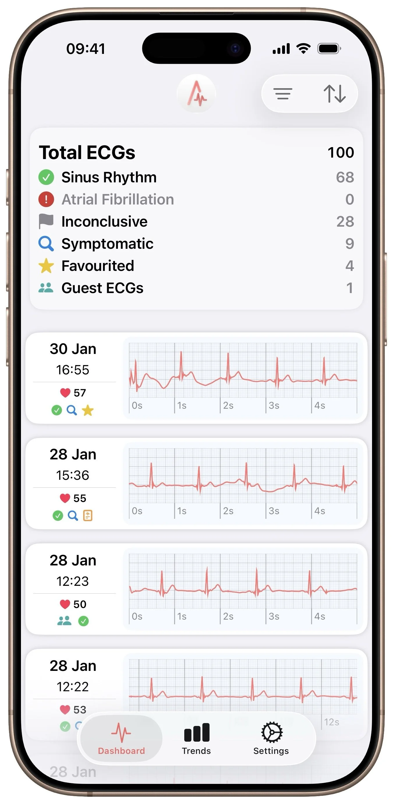 ECG Analyzer is a focused, privacy-first app designed for Apple Watch users who record ECGs and want to better understand and organise them over time.