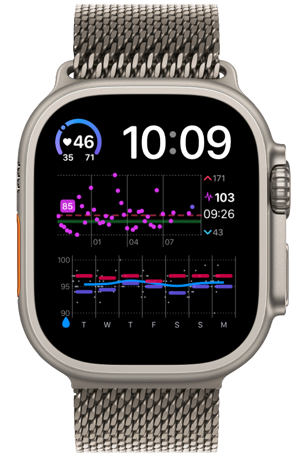 Today, yesterday or this week. Heart Rate, HRV & Blood Oxygen Saturation are all supported
